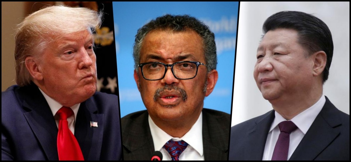 डोनल्ड ट्रंप,टेड्रोस और ज़िनपिंग |